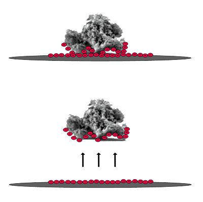 ElectroScrub works by putting an extremely strong negative charge on both the particle and the wafer surface. This creates a strong repulsion force removing the particle from the surface. DI water rinsing then carries the particle away from the vicinity of the wafer surface into the bulk liquid and down the drain. When the particles are separated from the surface they are moved away from the substrate and filtered out in the bath re-circulation system.
